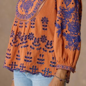 Stunning allover embroidery adds wonder and beauty to our vibrant notch neckline top graced with ladder lace insets. eyelet details and ruffles at the neckline. Bracelet length sleeves. Camisole sold separately. Cotton. Machine wash. Imported. Exclusive. Sizes XXS (00). XS (0?C2). S (4?C6). M (8?C10). L (12?C14). XL (16?C18). Approx. 24l.