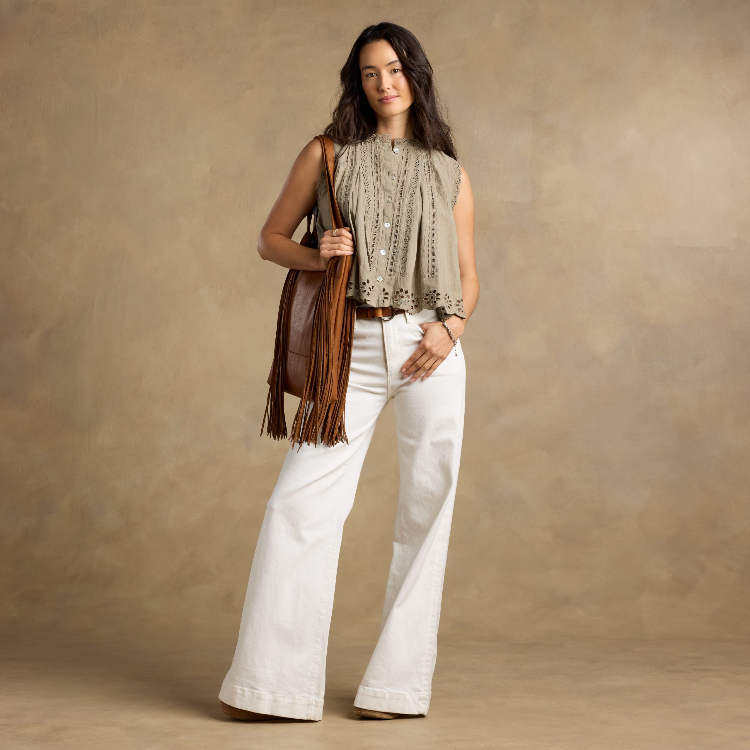 Equal parts effortless and feminine. our Malia Eyelet Top features a swingy pleated silhouette with real shell buttons. delicate lace details at the collar and armholes and a scalloped eyelet hem. Cotton. Machine wash. Imported. Sizes XS (0–2). S (4–6). M (8–10). L (12–14). XL (16–18). XXL (20–22). Approx. 23l.