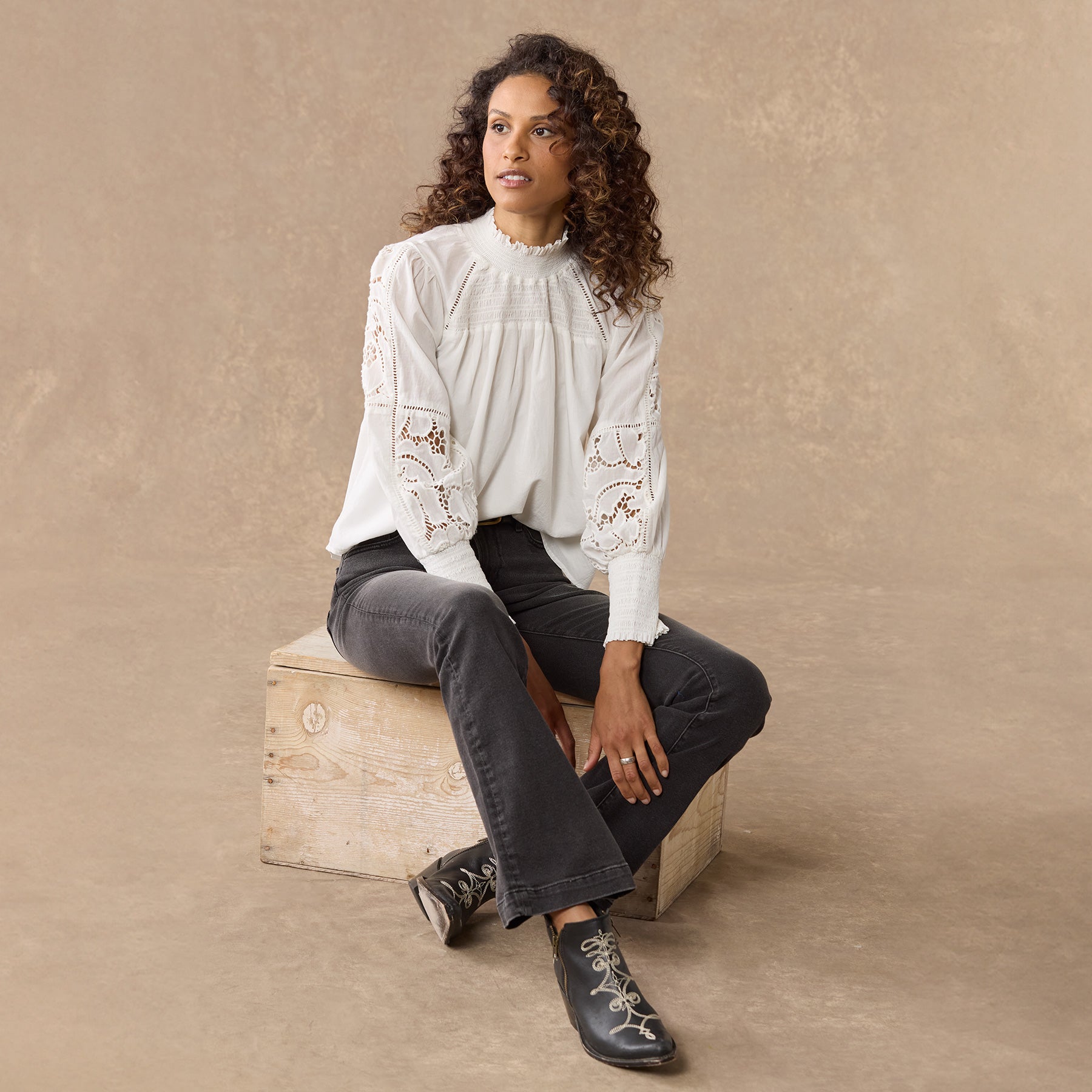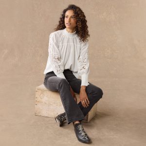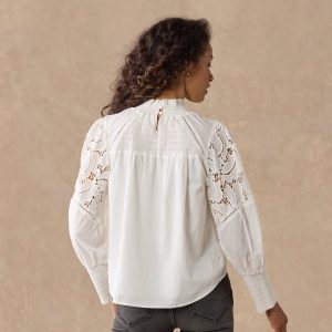 This ultra-feminine silhouette features smocking at the yoke and cuffs. ladder lace. lace insets and a ruffle at the neck. Cotton. Hand wash. Imported. Sizes XS (0–2). S (4–6). M (8–10). L (12–14). XL (16–18). Approx. 23.25l.