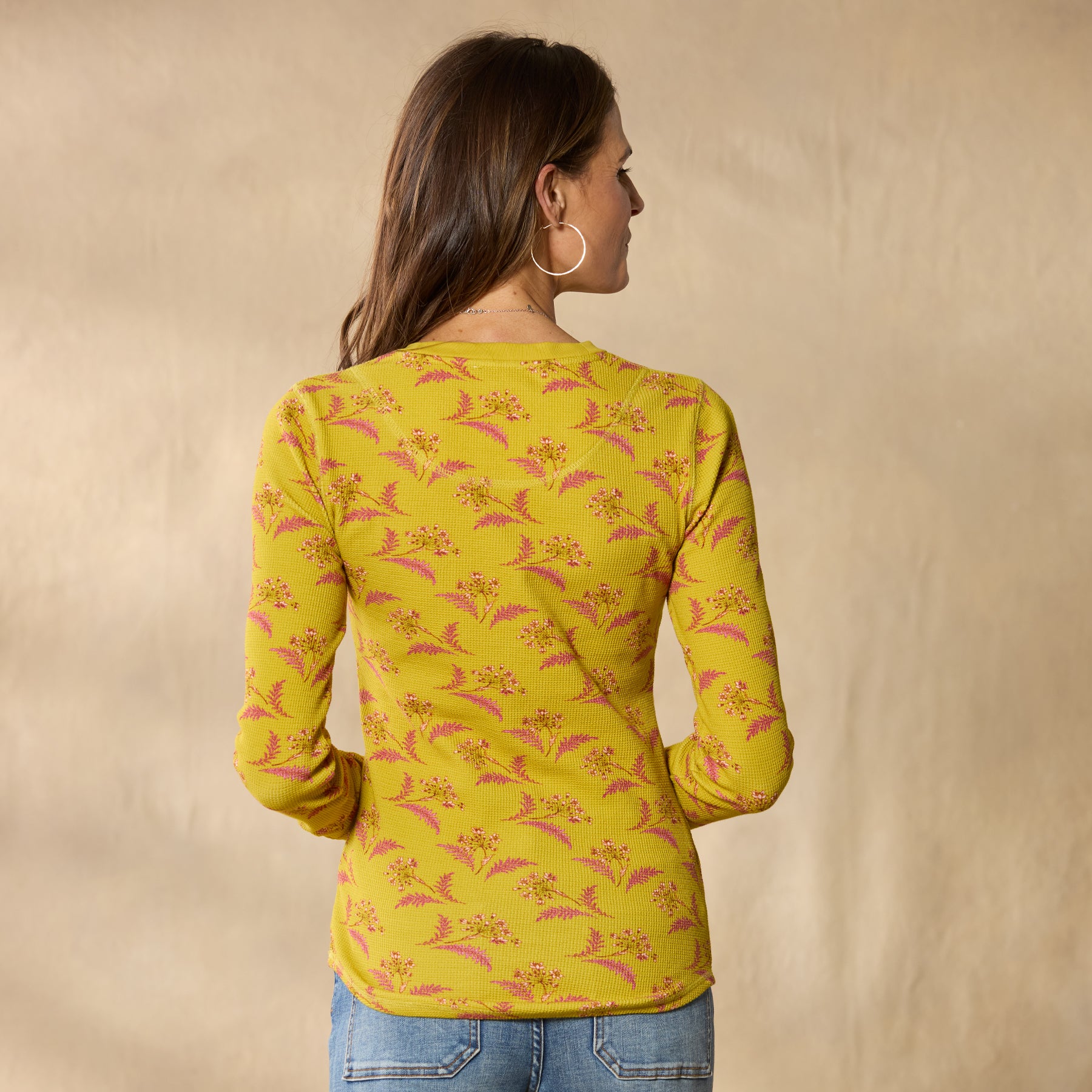 Our Sausalito is an update to a Sundance favorite—a cozy crewneck thermal in the loveliest floral print! Three-quarter sleeves with rib trim at the cuffs and neckline. Cotton/spandex. Machine wash. Imported. Exclusive. Sizes XS (0–2). S (4–6). M (8–10). L (12–14). XL (16–18). XXL (20–22). Approx. 25.5l.
